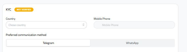 Enter your mobile number and choose your preferred contact method (WhatsApp or Telegram).
